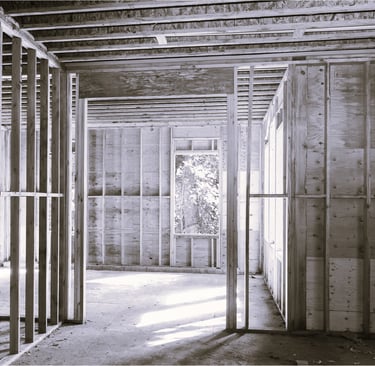 The wood innards of the house made up most of it. I mean, it was still wood. There was not any electric wiring even in this jam yet.